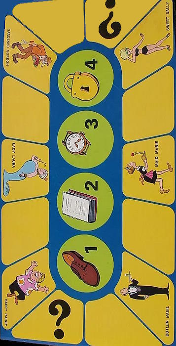Als Hintergrund dient ein altes englisches Schloss, mutmaßlich von Lady Laura, die samt Maid Mary, Butler Basil und Gärtner Gordon sowie zwei Gästen (Sweet Sally und Happy Harry) zu den Verdächtigen zählt.