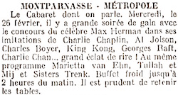 Feuille d'avis de Lausanne 25 Feb 1936Bereits zu einem Galaabend in Lausanne 1936 wurde er in Zeitungen als der »berühmte Max Herman« angekündigt, mit Imitationen von »Charlie Chaplin, Al Jolson, Charles Boyer, King Kong, Georges Raft, Charlie Chan … Viel zu lachen!«